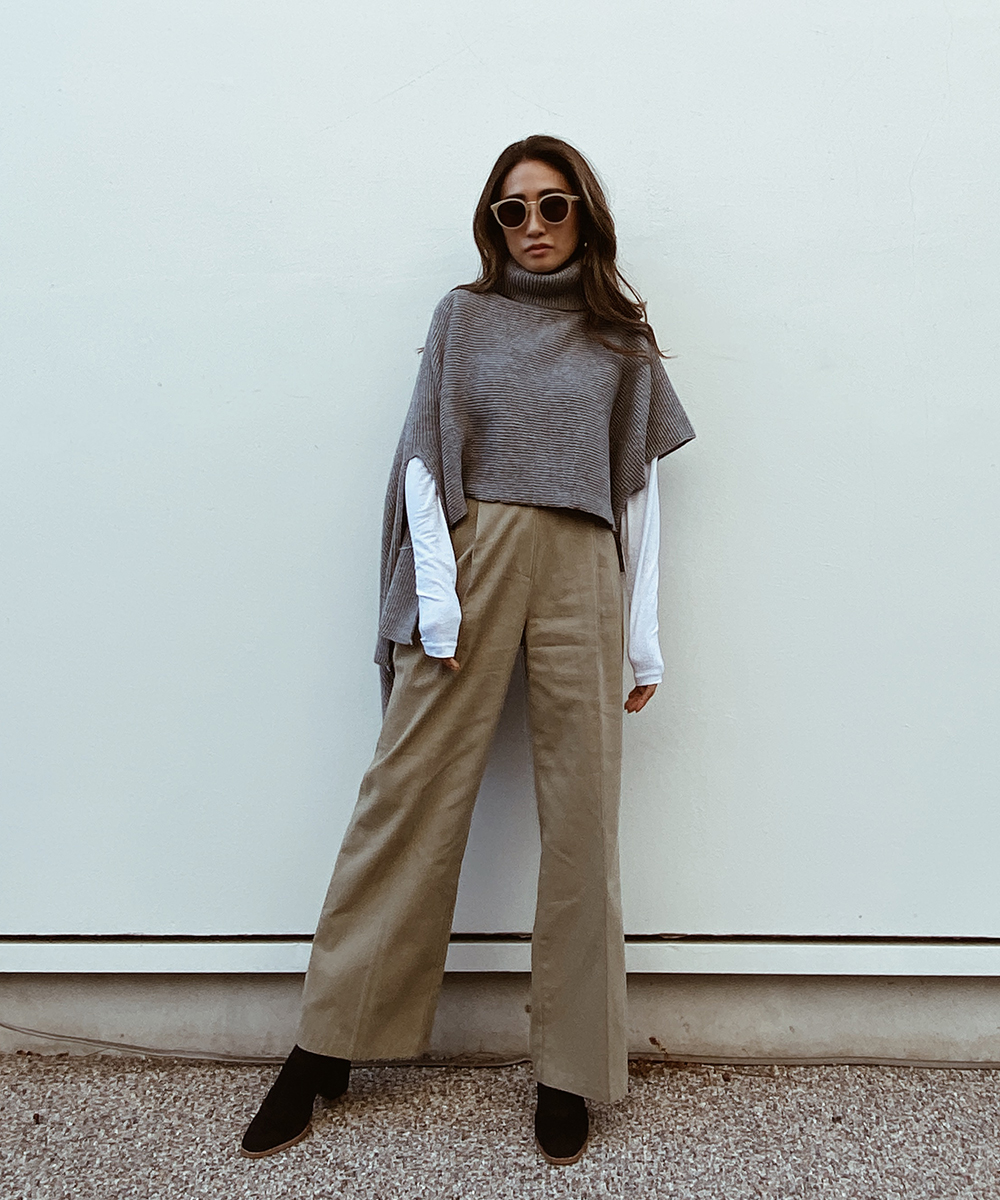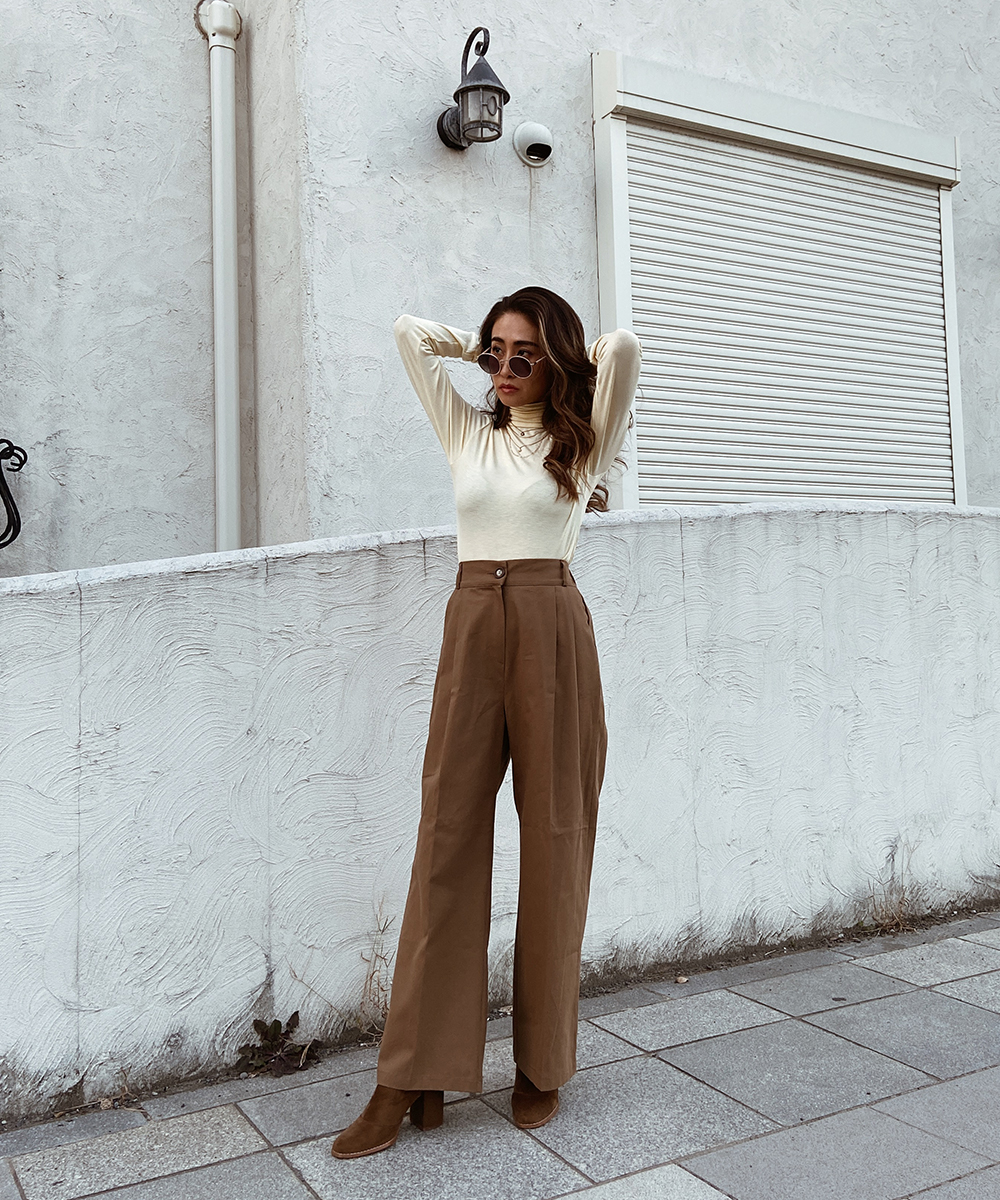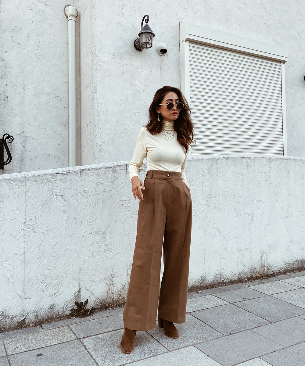 シンプルなタートルネックとヒールを合わせて上品な大人スタイルに☆