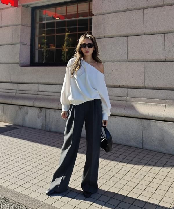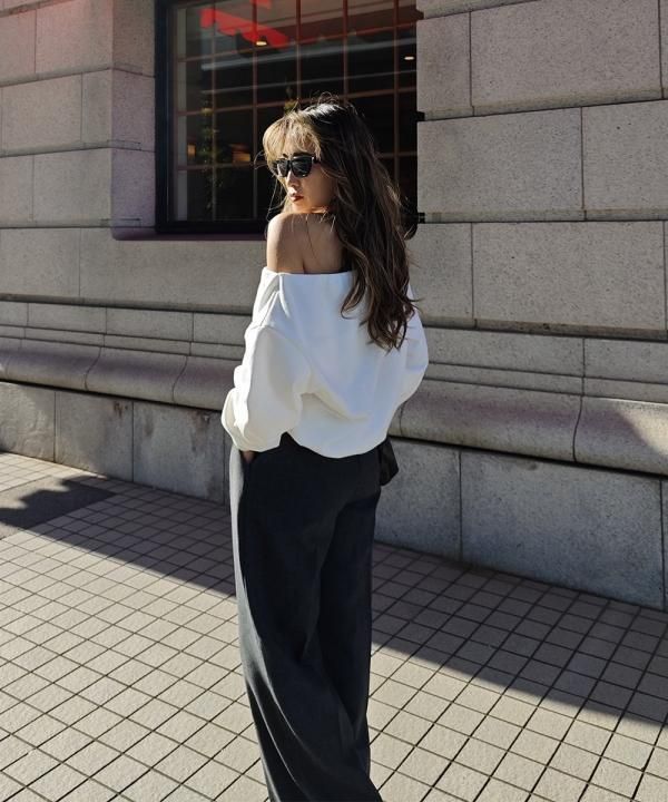 Offshoulder ribbed sleeves tops