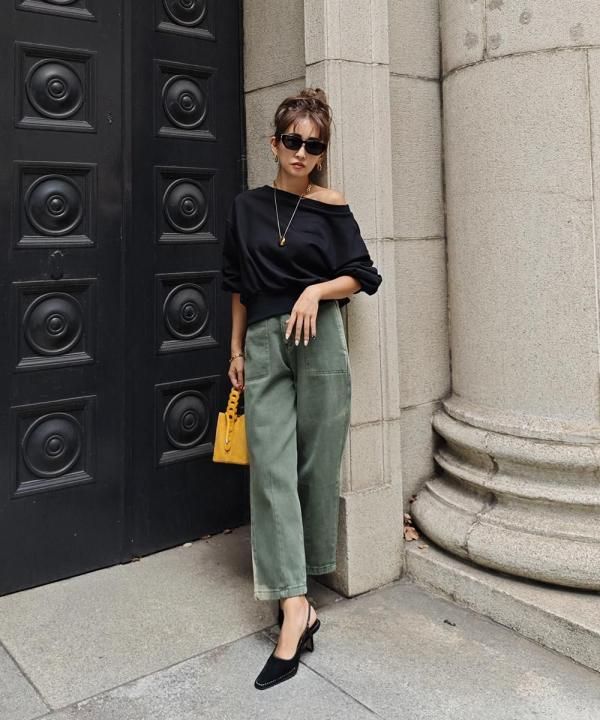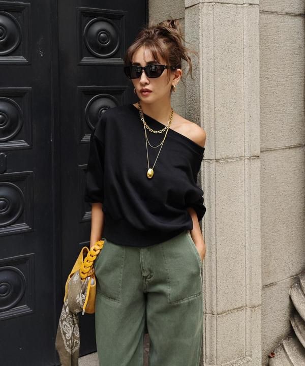 ワイドなボトムでも、ショート丈なのでバランスよく合わせていただけます。
