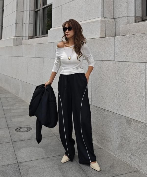 ジャケットやシャツを羽織れば、大人のリラックスコーデが完成します♡
