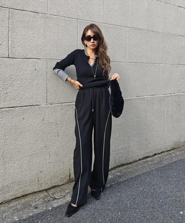 パイピングデザインが縦のラインを強調し、スタイルアップ効果を♪