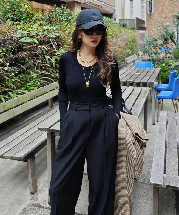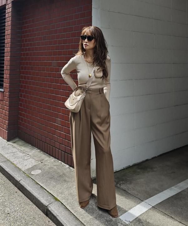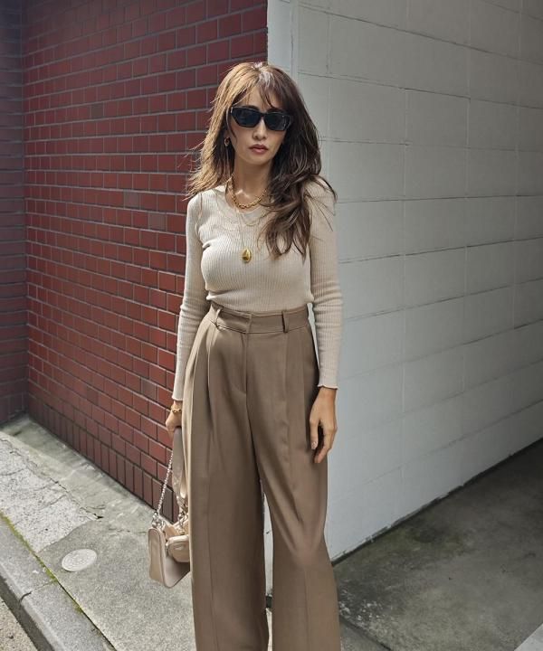 首元は程よく開いたデザインで、女性らしさを引き立てつつ自然な抜け感を演出してくれます。