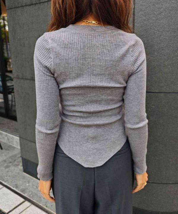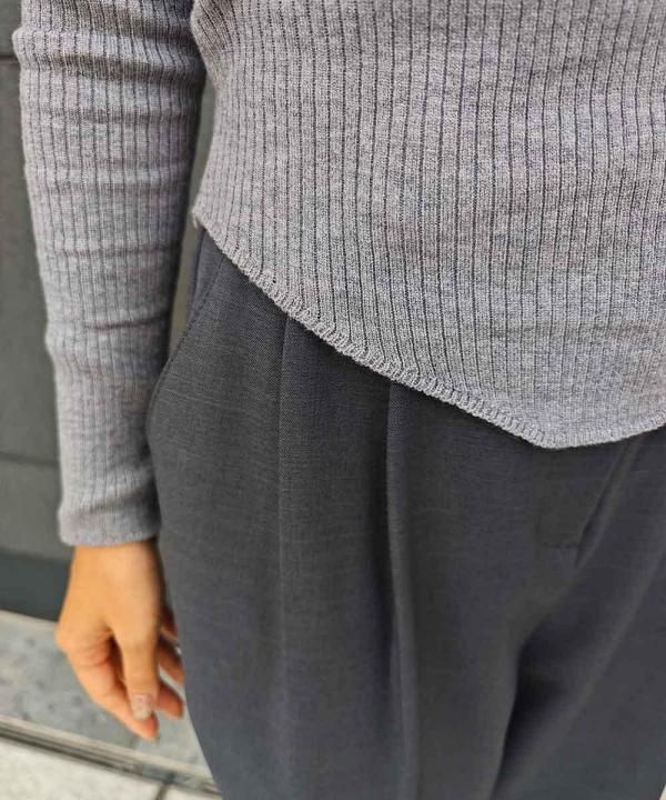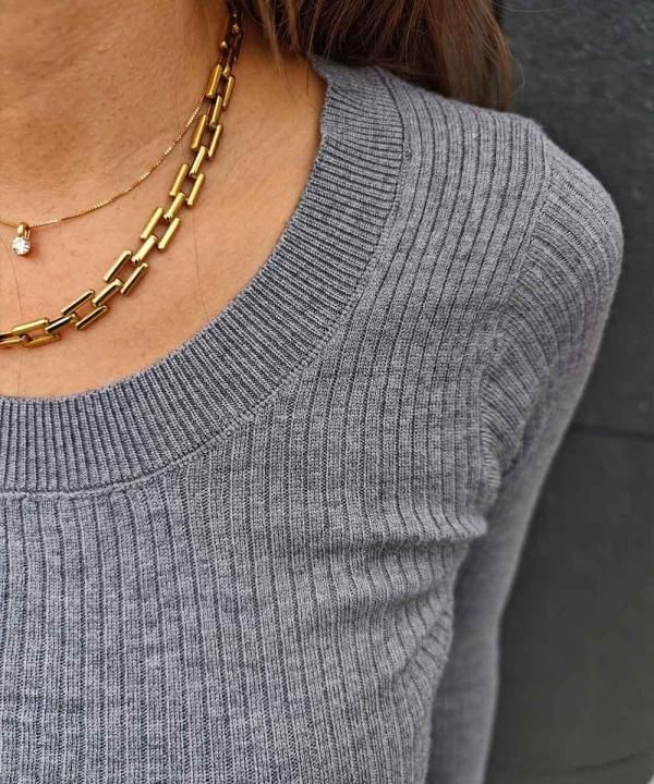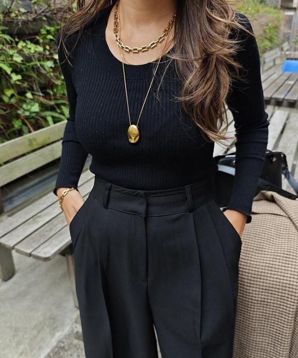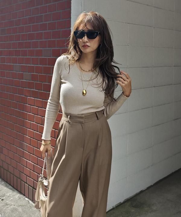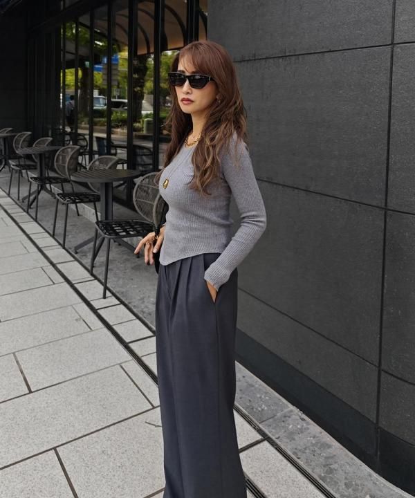 Uネックでデコルテのさりげない肌見せが叶うリブニット