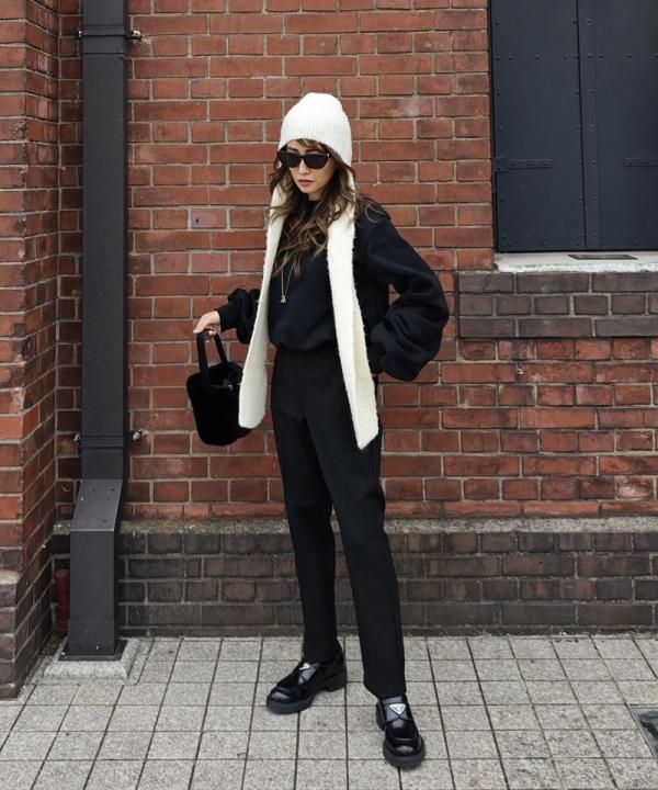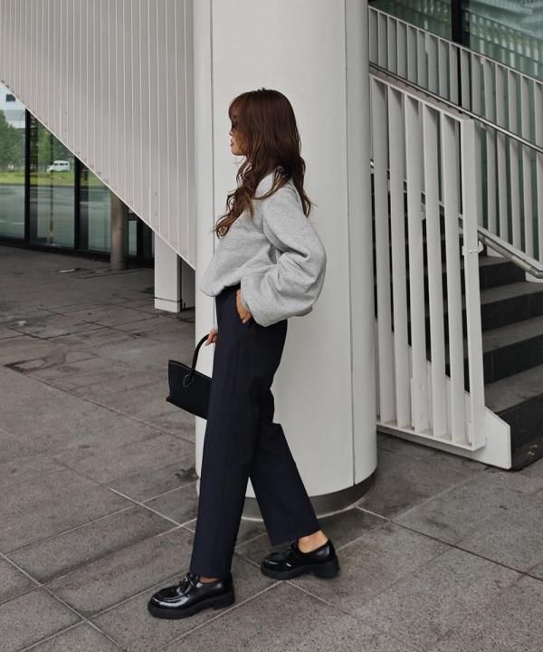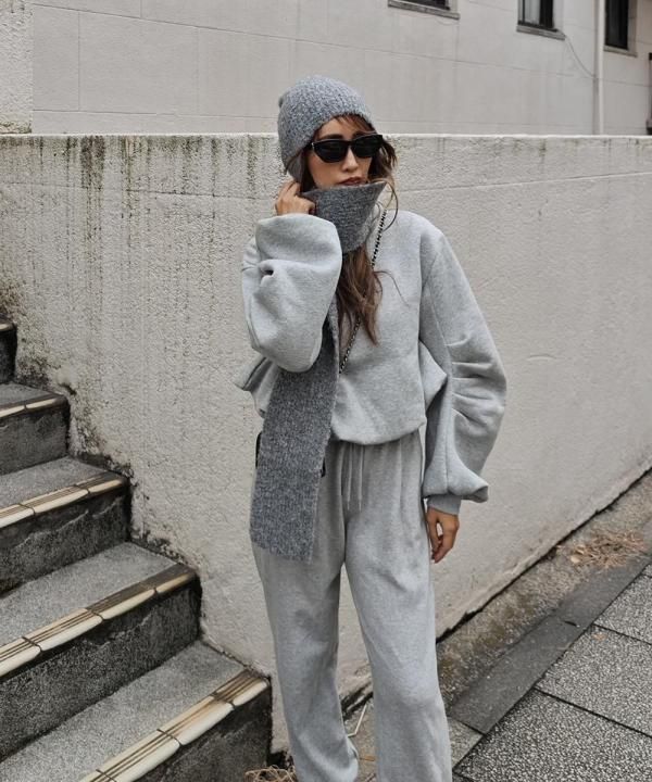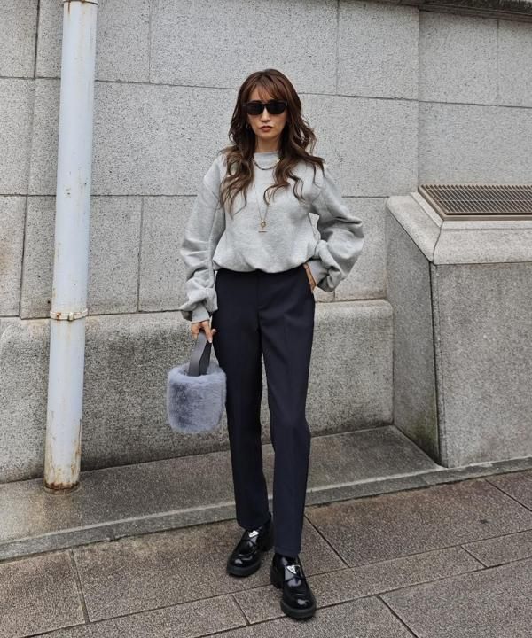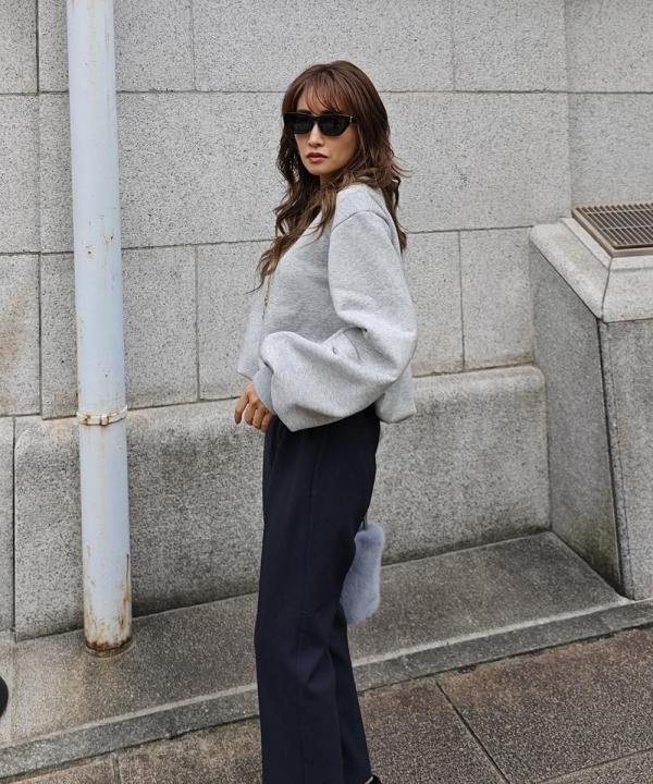 スウェット×バルーンの組み合わせがカジュアル過ぎず、いろんなスタイリングを楽しめます。
