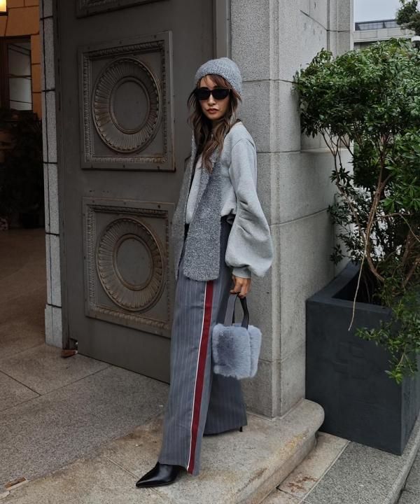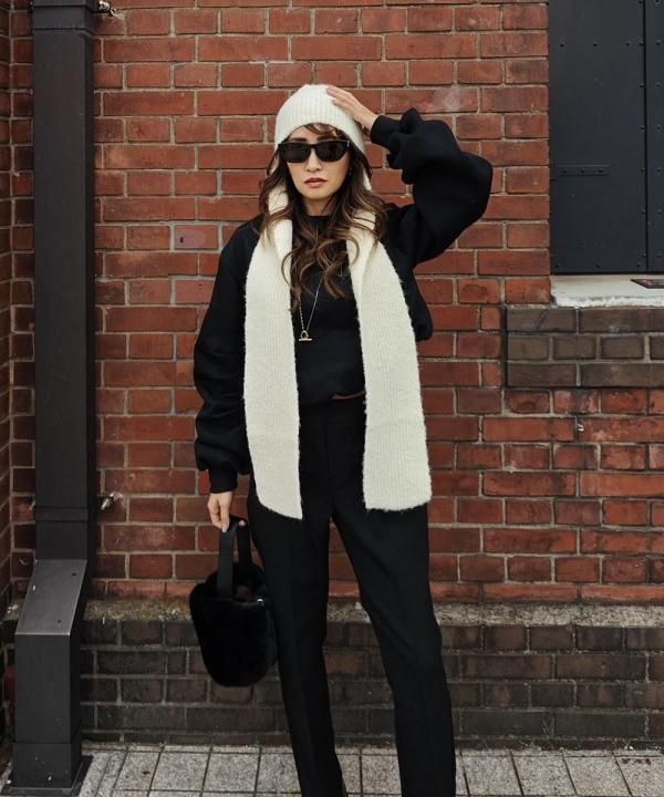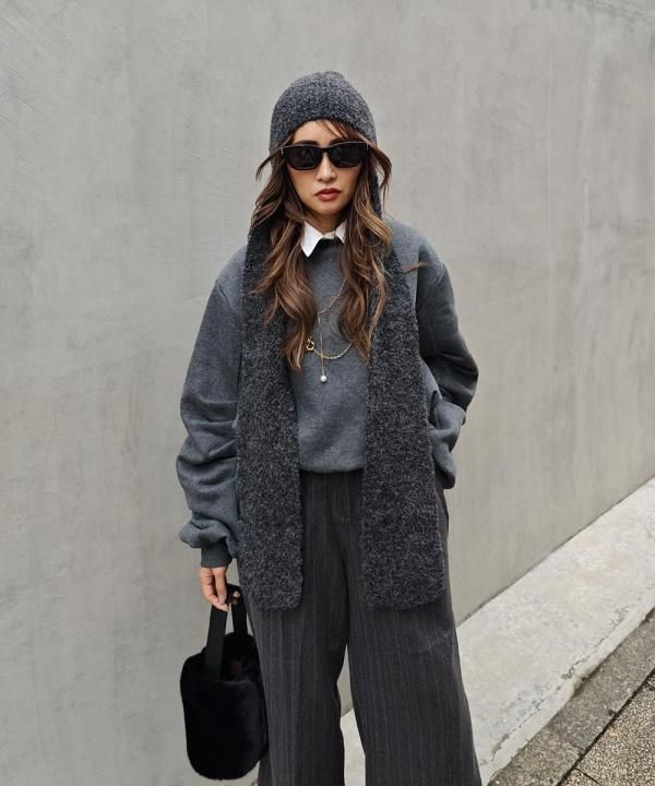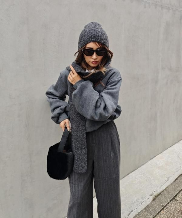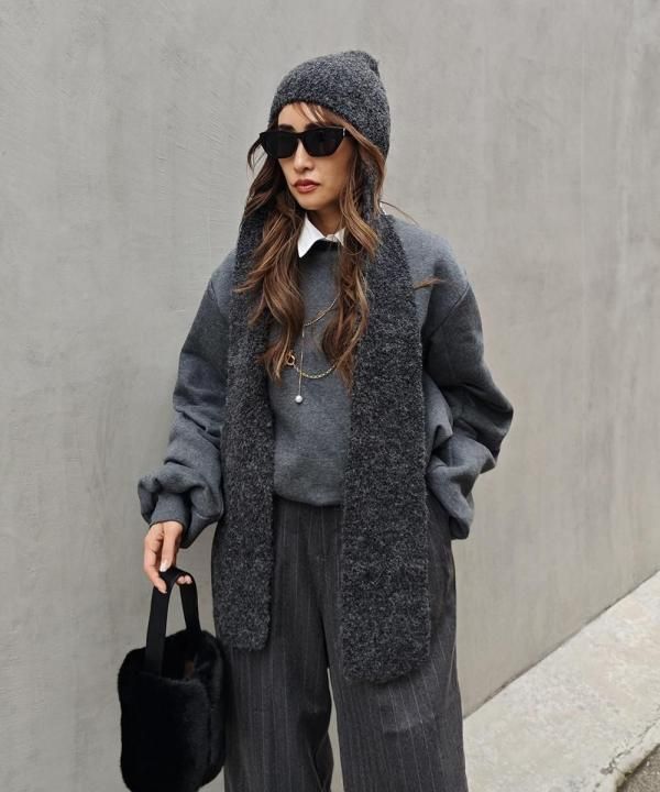 マフラーは垂らしたままでもトレンド感が出て、首に巻いても可愛く防寒できちゃう♪