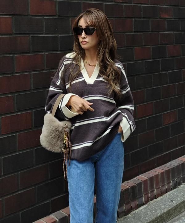 ゆったりとしたシルエットを活かしたルーズなスタイリングや細身のボトムを合わせてメリハリのあるコーデも。