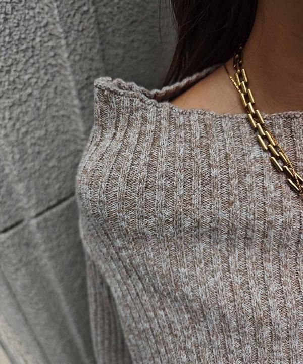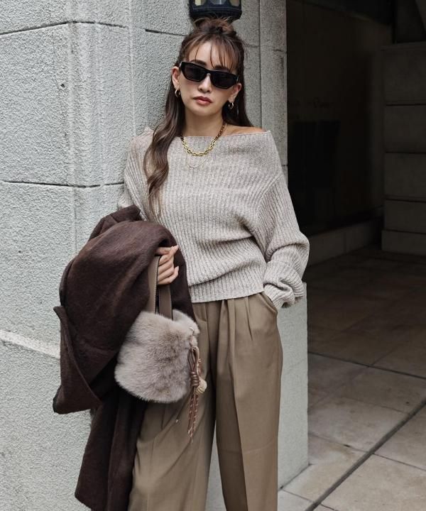 オフショルデザインなので、冬の肌見せスタイルを楽しめます。