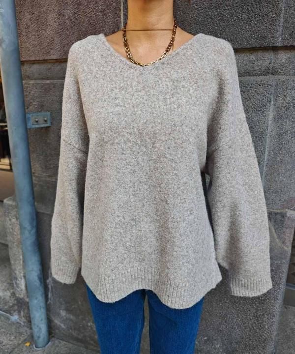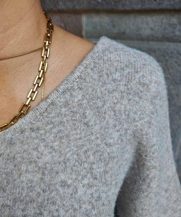 深すぎないVネックでデコルテを綺麗に見せてくれます。