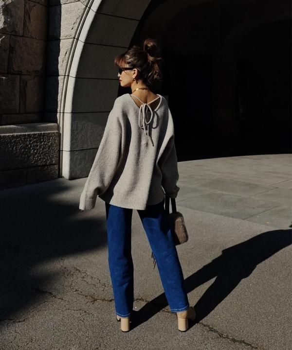 バックはUネックとリボンで後ろ姿に甘さをプラスしながら、大人っぽい抜け感を演出。