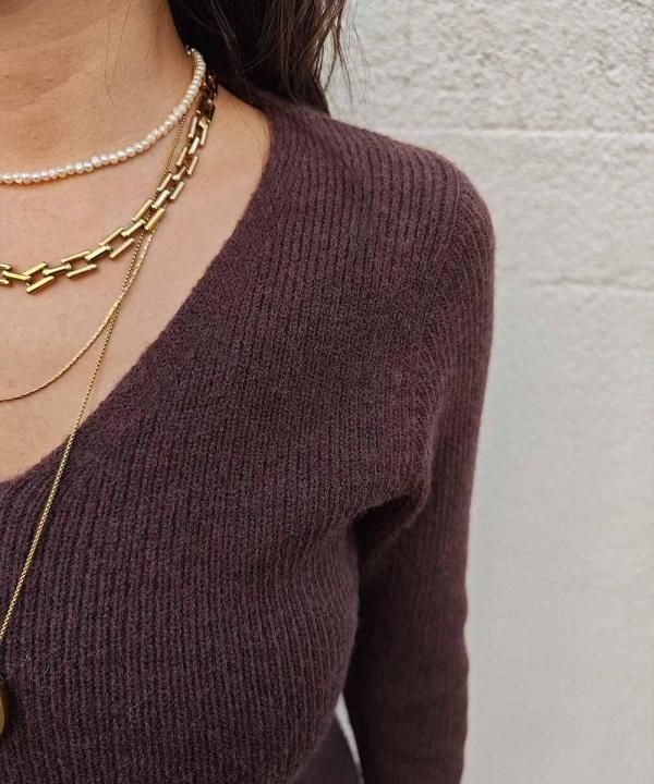 程よい厚みのリブニット素材で伸縮性があり、ストレスフリーな着心地です。