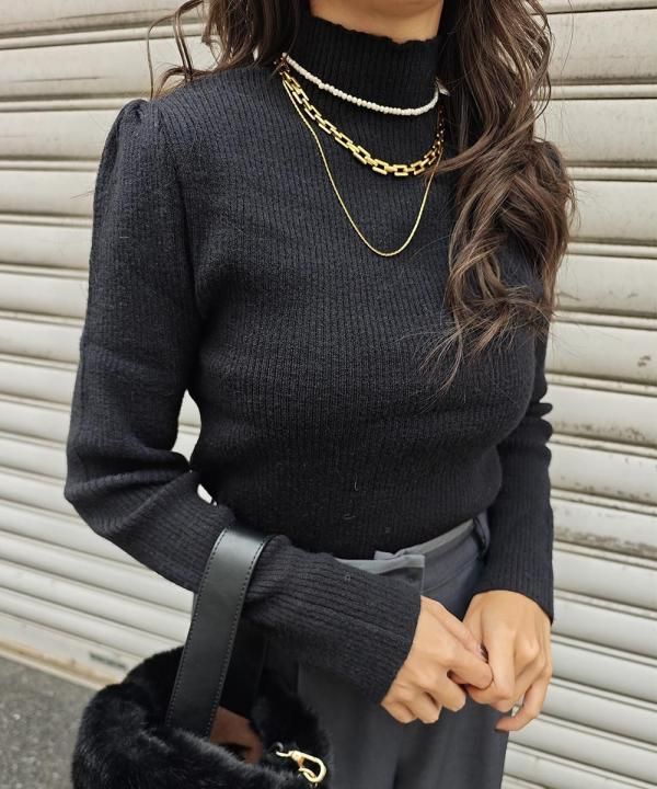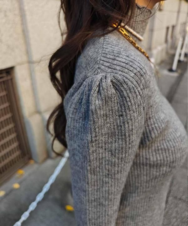 12/3 20:00~Puff sleeve high neck knit