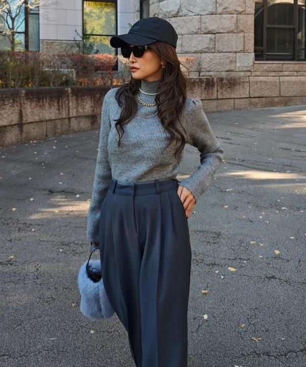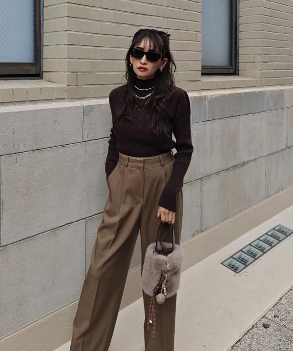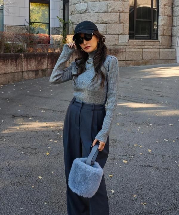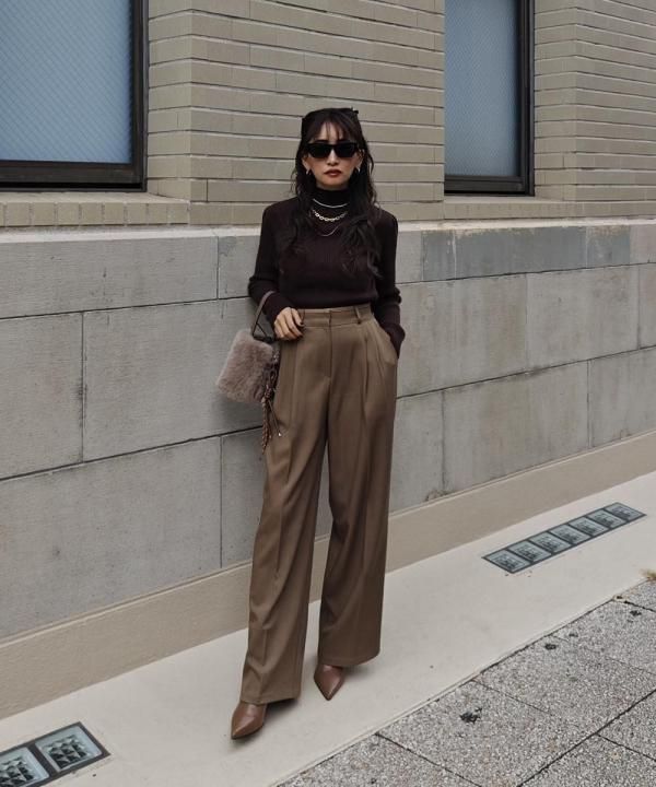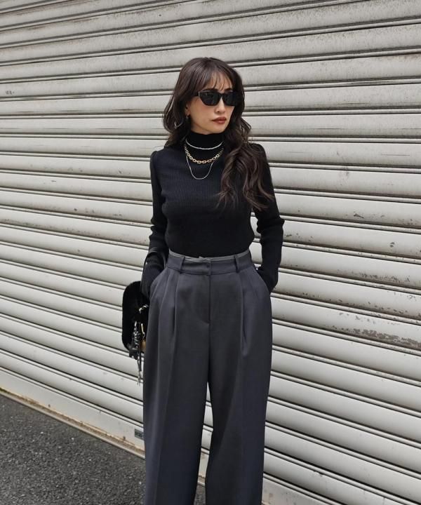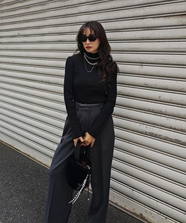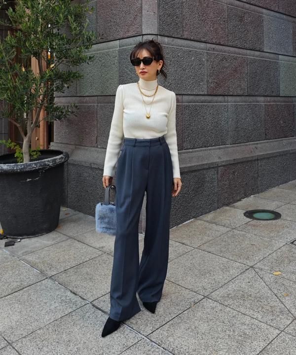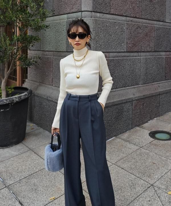 程よく体にフィットする細リブ素材に、華やかなパフスリーブと上品なハイネックをかけ合わせた1枚。