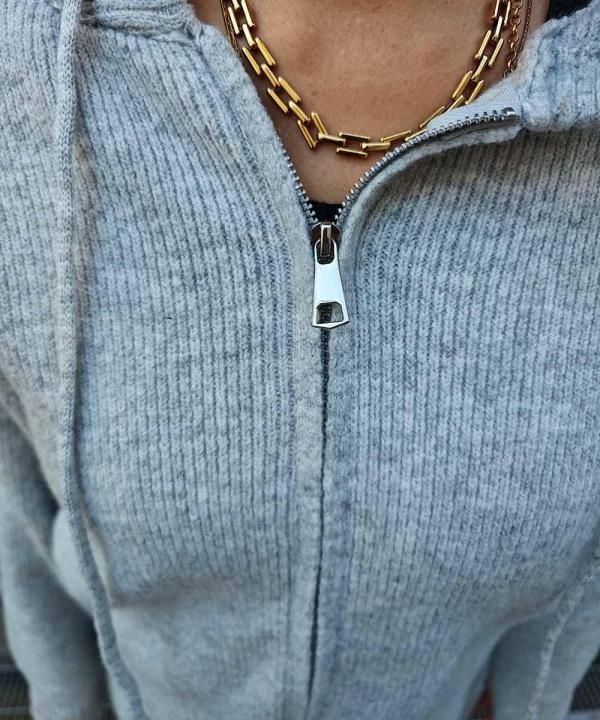 カジュアルな印象のパーカーをニット素材で仕上げることによって、いろんなテイストにマッチします。