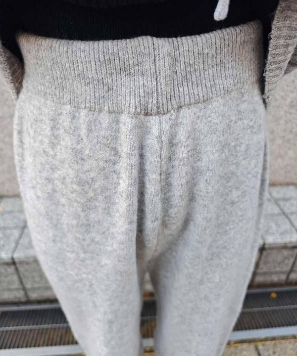ニットパンツはウエストゴムなのでストレスフリーな着心地。