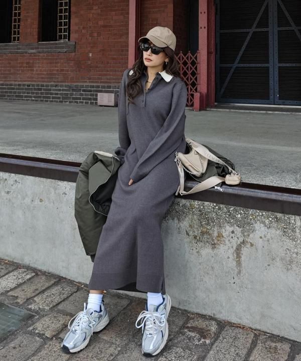シンプルに使いやすい、ポロニットワンピース