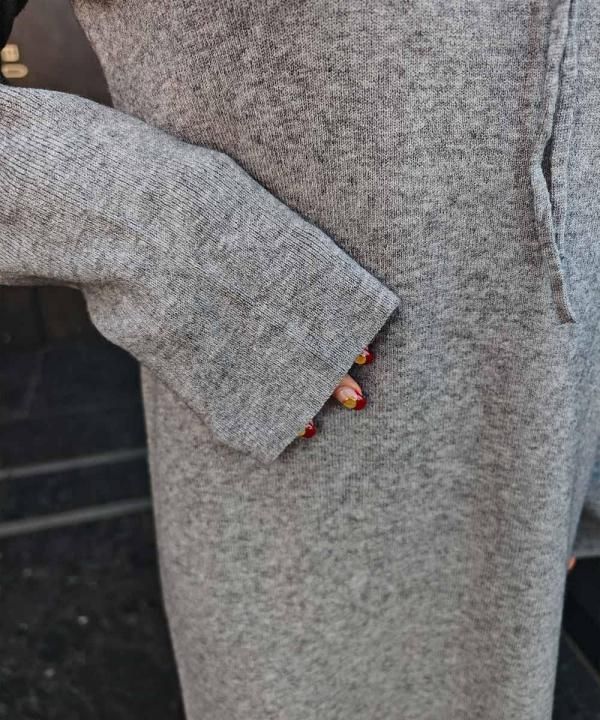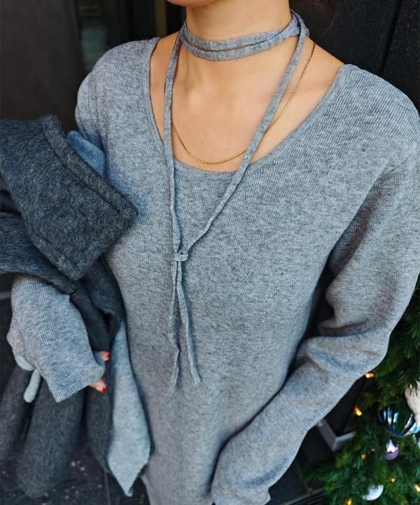 ネックのチョーカー紐がアクセントになったニットワンピース